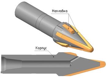 Режуще-истирающие элементы напаяны на коническую поверхность в виде полос, сходящихся у вершины.