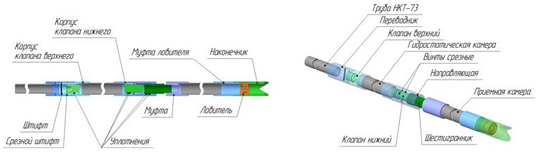 Желонка гидростатическая состоит из верхнего клапана, статической камеры, нижнего клапана, приемной камеры и корпуса нижнего с воронкой с ловителем.