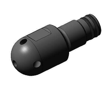 Перо сферическое представляет собой корпус, изготовленный из нержавеющей стали. В верхней части насадки выполнена ниппельная присоединительная резьба с герметизирующими кольцами. В насадке размывочной выполнен один прямой промывочный канал и четыре боковых для прохода промывочной жидкости.